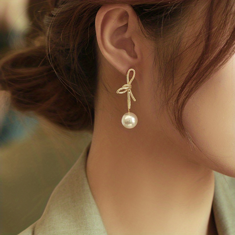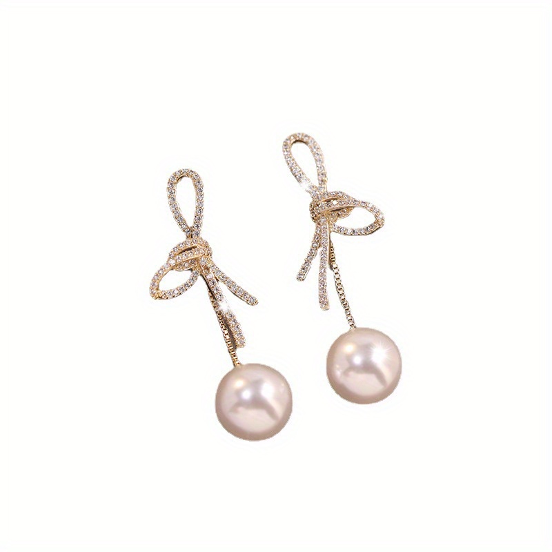 Delicate Faux Pearl Pendant Dangle Earrings - Drop & Dangle Jewelry with Shiny Zirconia, Elegant Sexy Style, and Knot Design - Perfect Gift for Women and Girls