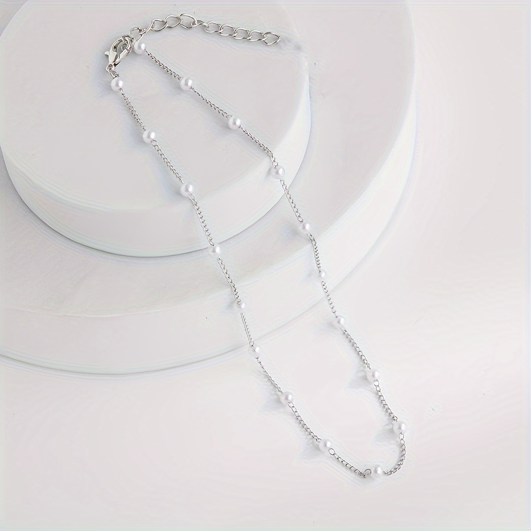 Delicate Faux Pearl Stainless Steel Clavicle Chain Collarbone Chain Neck Jewelry